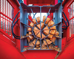Avec le nouveau système HakkiMultiBlade, Le combiné de bois de chauffage Hakki Pilke 55 Pro peut fendre jusqu’à 24 morceaux avant de passer facilement à 8 morceaux en quelques secondes. Le système de réglage en hauteur du coin de fendage, hydraulique et automatique, garantit la qualité systématique du bois, quel que soit le diamètre des bûches. Le système comporte un capteur innovant qui mesure le diamètre de chaque bûche et ajuste la hauteur de la lame de fendage en fonction pour obtenir des résultats optimisés. Grâce à la nouvelle conception du coin, le passage standard de 8 à 16 morceaux est également plus rapide.